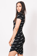 Robe Sixth June avec logo Sixth June imprimé façon all-over. Coupe très moulante, longueur midi, base arrondie, col rond et manches courtes. Modèle noir.