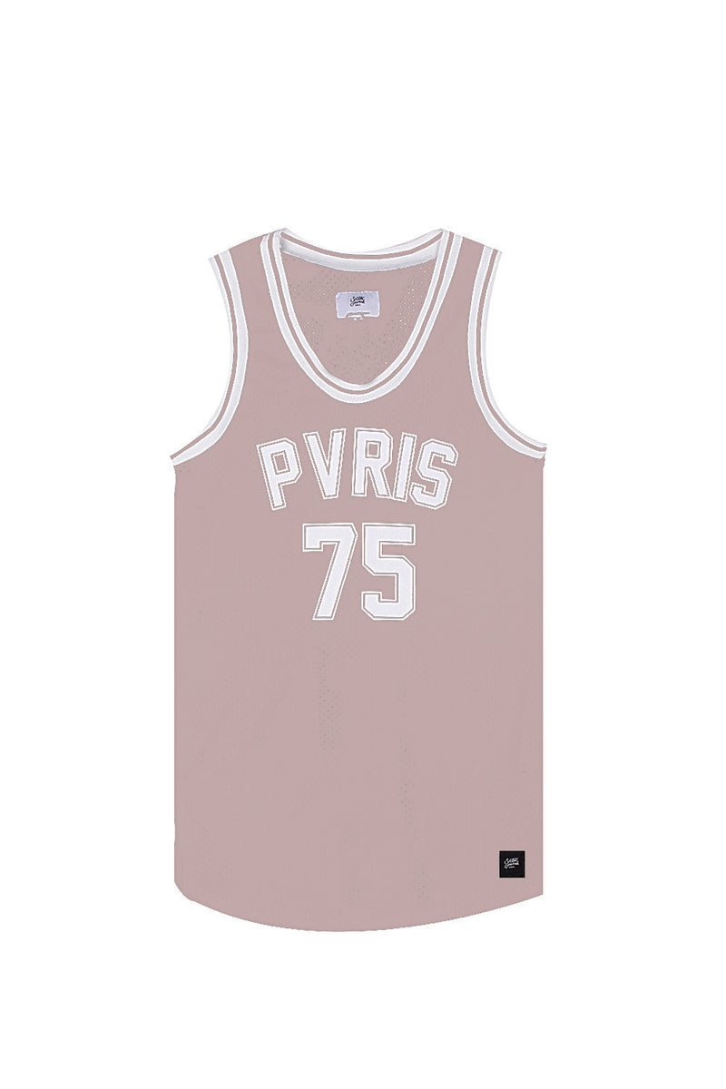 Robe rose Sixth June Femme. Inscription : Pvris 75, à l'avant. Inspiration maillot de basket.