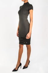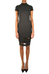 Robe mi-longue kaki Sixth June Femme. Col haut. Fermeture en zip dans le dos. Effet destroy en bas. Manches courtes.