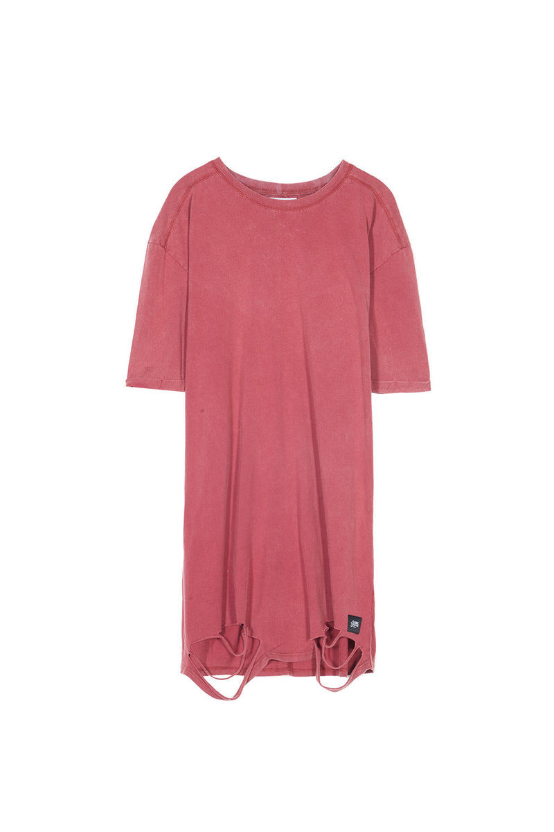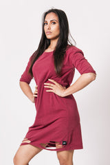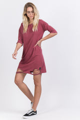 Robe t-shirt femme Sixth June effet destroy, avec des déchirures à l'avant au niveau du bas. Coupe classique et courte, épaules tombantes et manches mi-longues avec un petit ourlet. Modèle bordeaux.