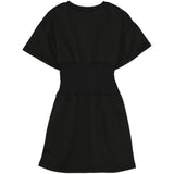 Elastique effet corset au centre de la robe. Imprimé logo sur la poitrine.