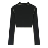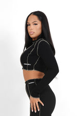 Tissu côtelé avec couture surfilée à l'avant. Col semi montant, logo sur patch en gomme.