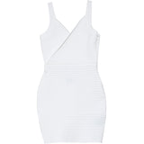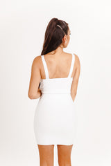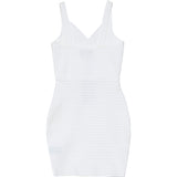 Robe à bretelles pour femme de marque Sixth June. Décolleté croisé et dégagé. Matière côtelée, élastique et épaisse. Coupe moulante, longueur mini. Modèle blanc.