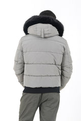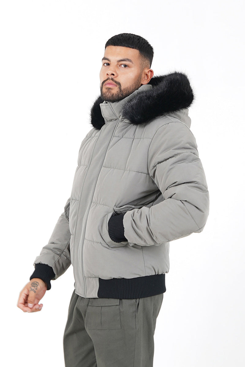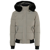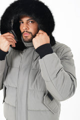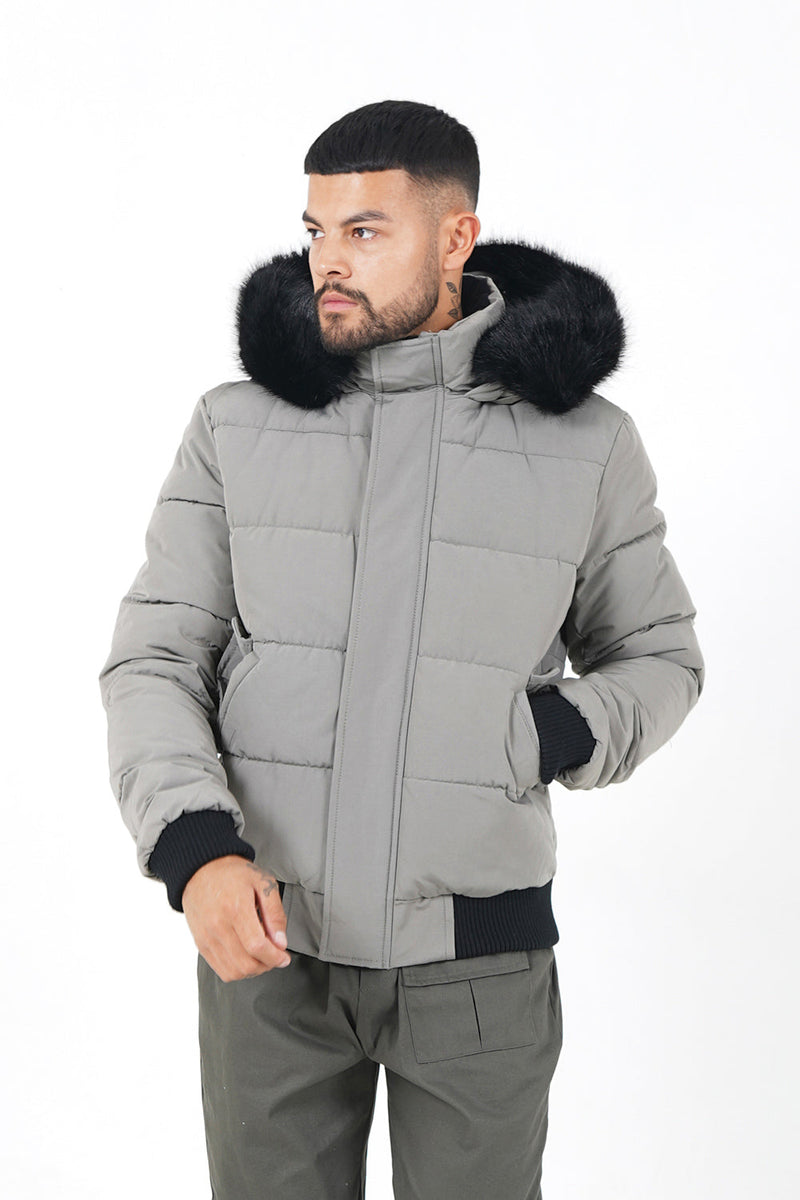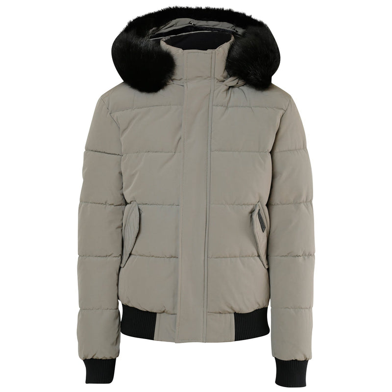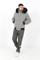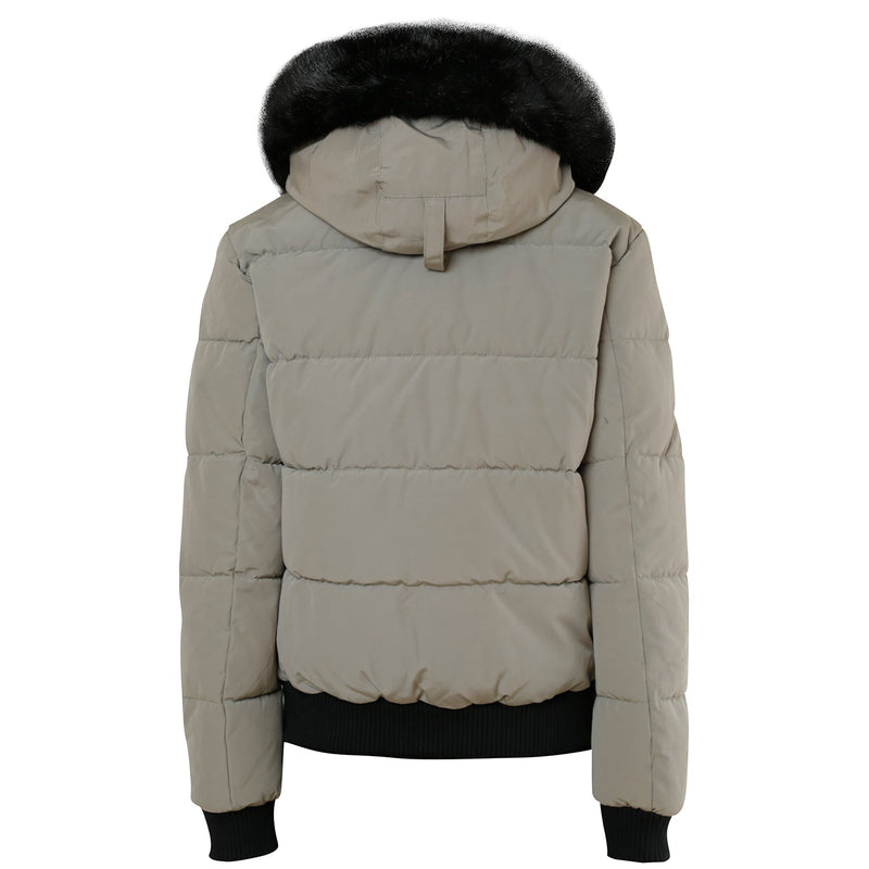 Capuche ajustable (non amovible) avec fausse fourrure amovible, intérieur capuche doublé.