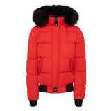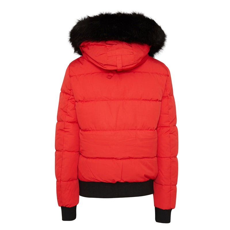 Capuche ajustable (non amovible) avec fausse fourrure amovible, intérieur capuche doublé.