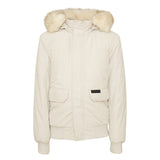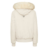 Capuche amovible avec patte de serrage à l'arrière et avec fausse fourrure amovible. Grandes poches à l'avant avec fermeture à aimant, poches avec fermeture à aimant au niveau de la poitrine, fermeture centrale à zip et aimantée, Bords-côtes aux poignets et taille élastique.