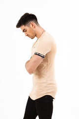T-shirt moulant logo élastique Beige
