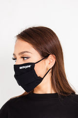 Masque mixte pour adultes. Inscription SIXTH JUNE sur le côté gauche. Accessoire de mode, il ne s'agit ni d'un dispositif médical au sens du Règlement UE/2017/745 (masques chirurgicaux), ni d'un équipement de protection individuelle au sens du Règlement UE/2016/425 (masques filtrants de type FFP2). Coupe classique, barrette nasale. Modèle noir.