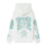 Grand imprimé à l'arrière avec crâne de squelette et des textes de part et d'autre, roses et textes imprimés le long des bras, petit imprimé à l'avant représentant des mains de squelette tenant une rose avec logo Sixth June.