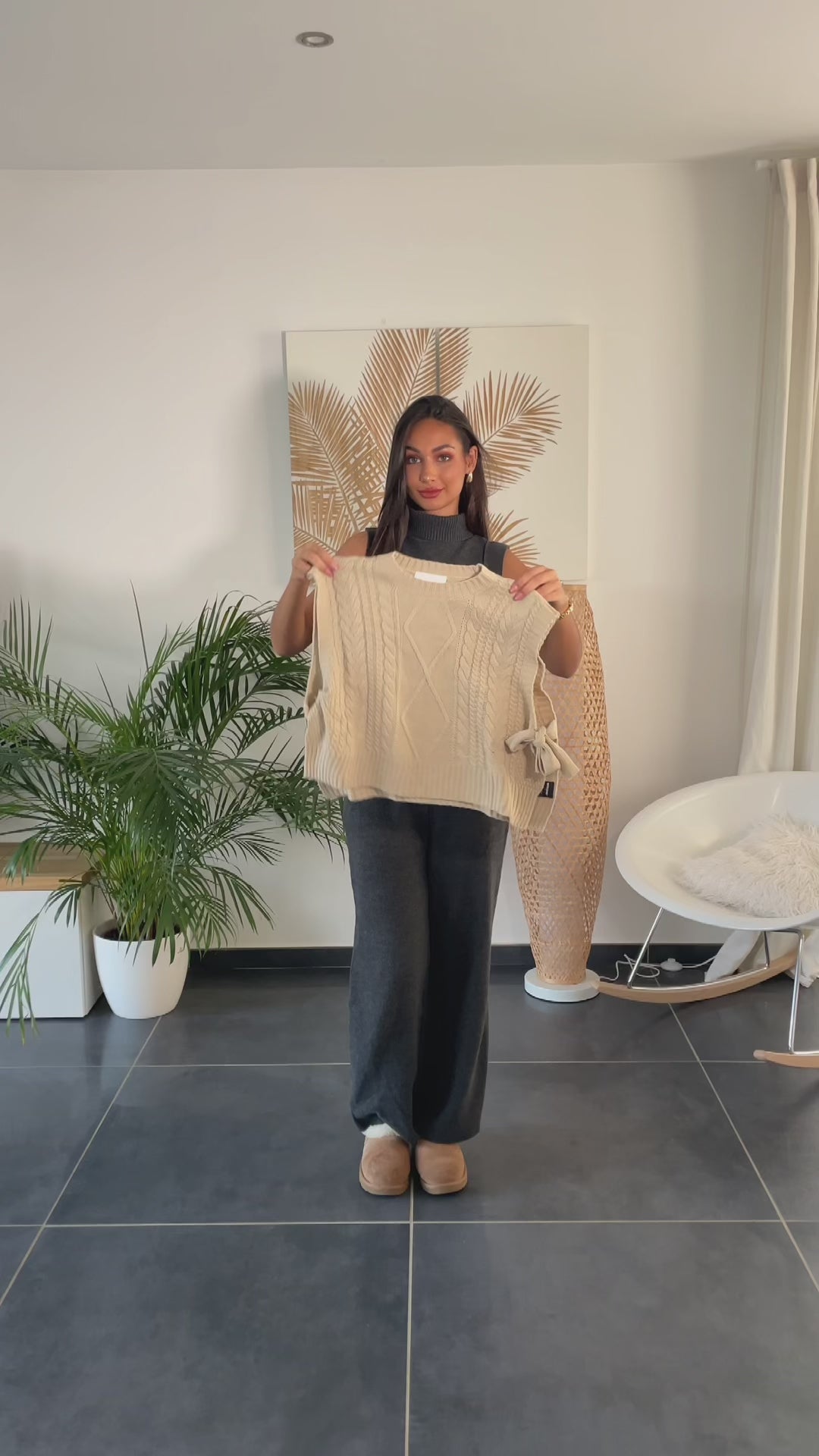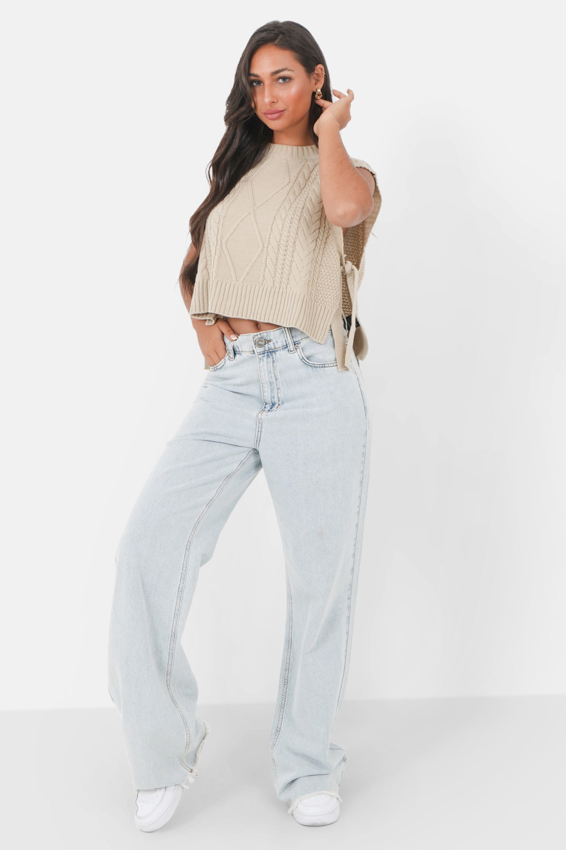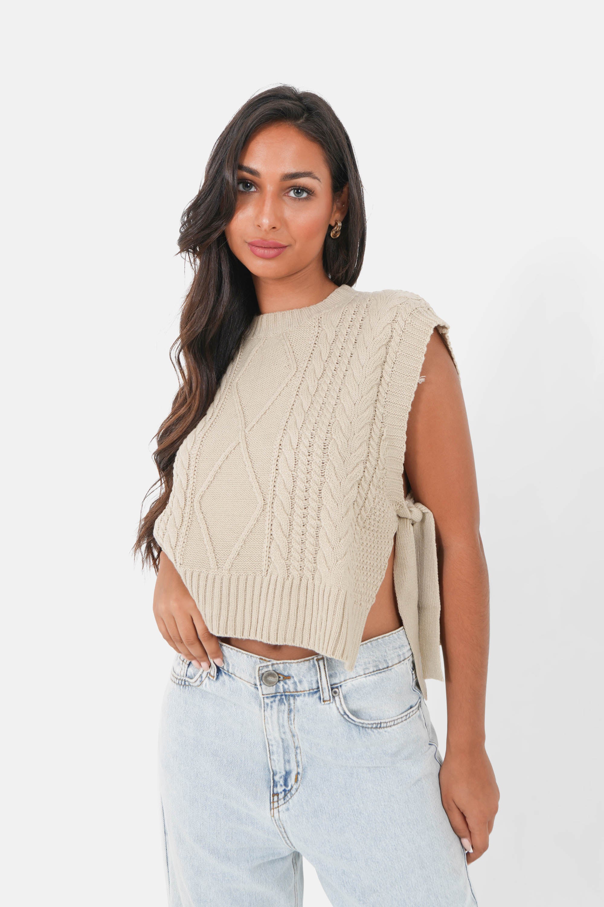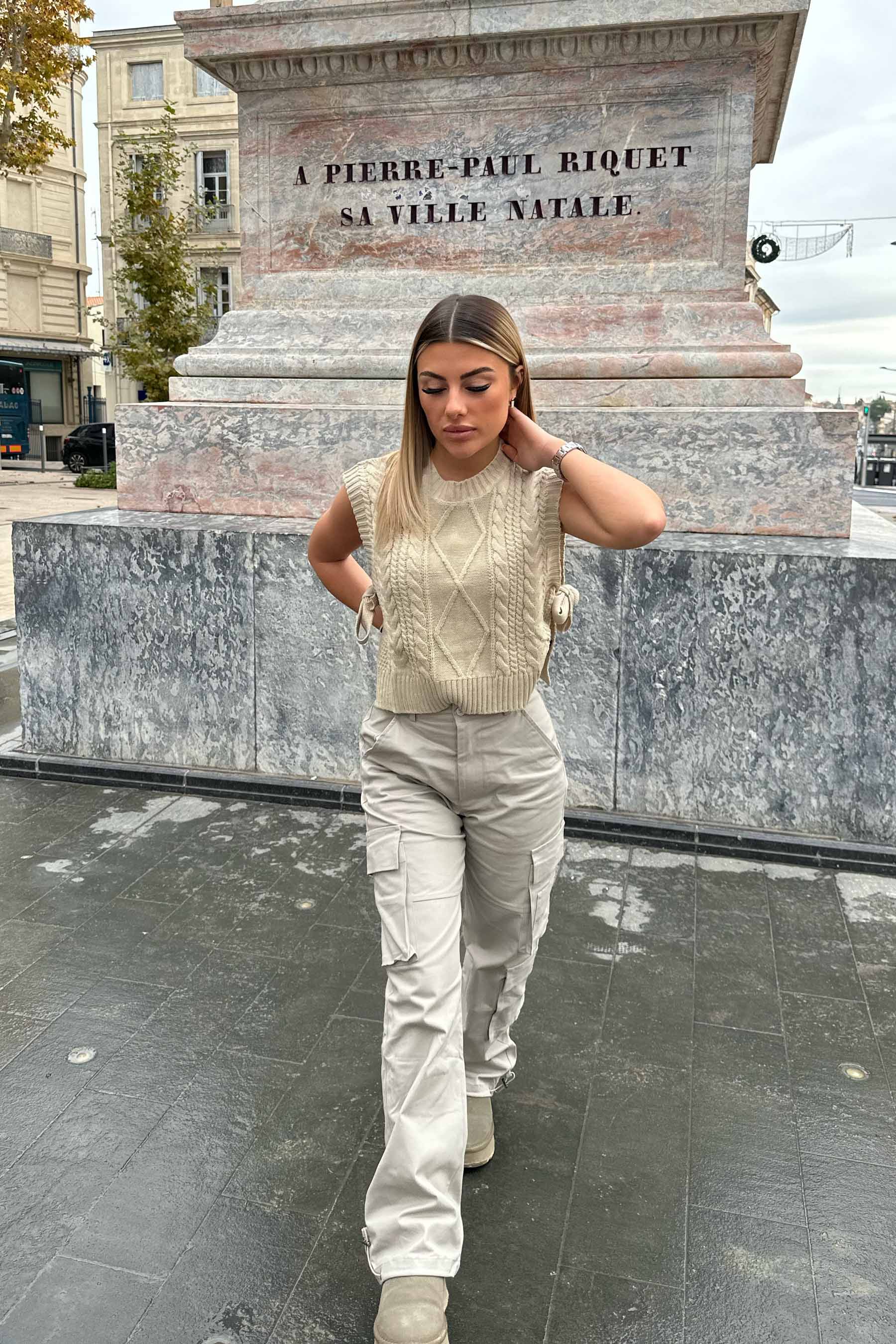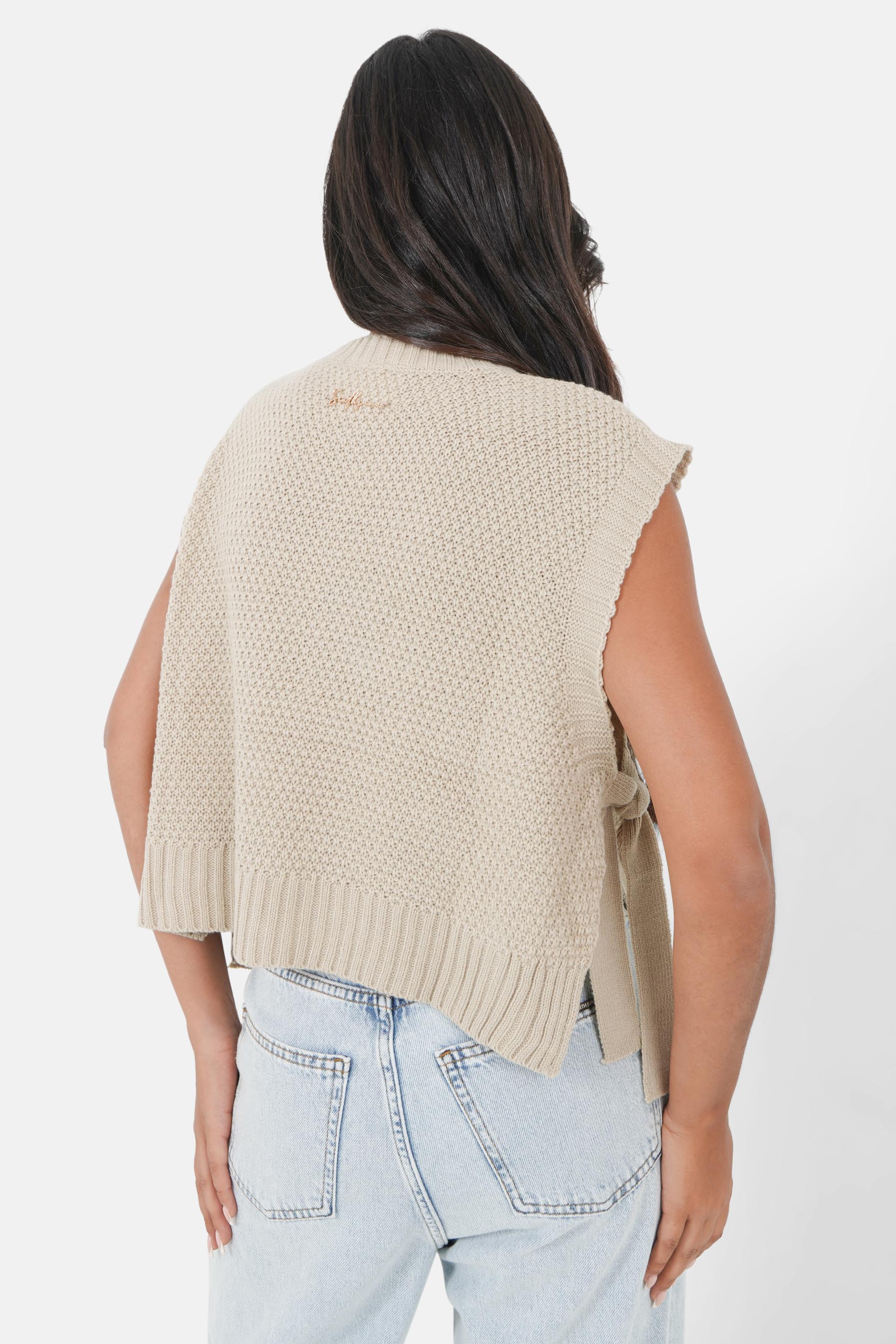 Logo bijou à l'arrière, torsades à l'avant, maille fine.