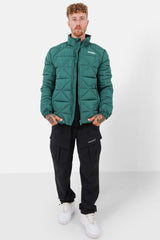Matelassage triangle, poches latérales à zip, logo brodé près de l'épaule.