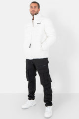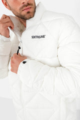 Matelassage triangle, poches latérales à zip, logo brodé près de l'épaule.