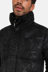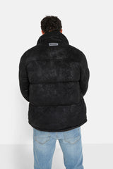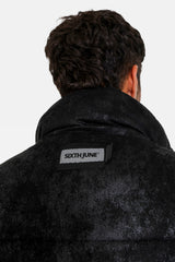 Matière effet suédine, matelassée, poches latérales avec fermeture aimantée, logo tissé sur patch à la nuque.