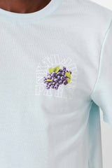 Logo imprimé avec une grappe de raisin en petit à l'avant et en grand au dos.