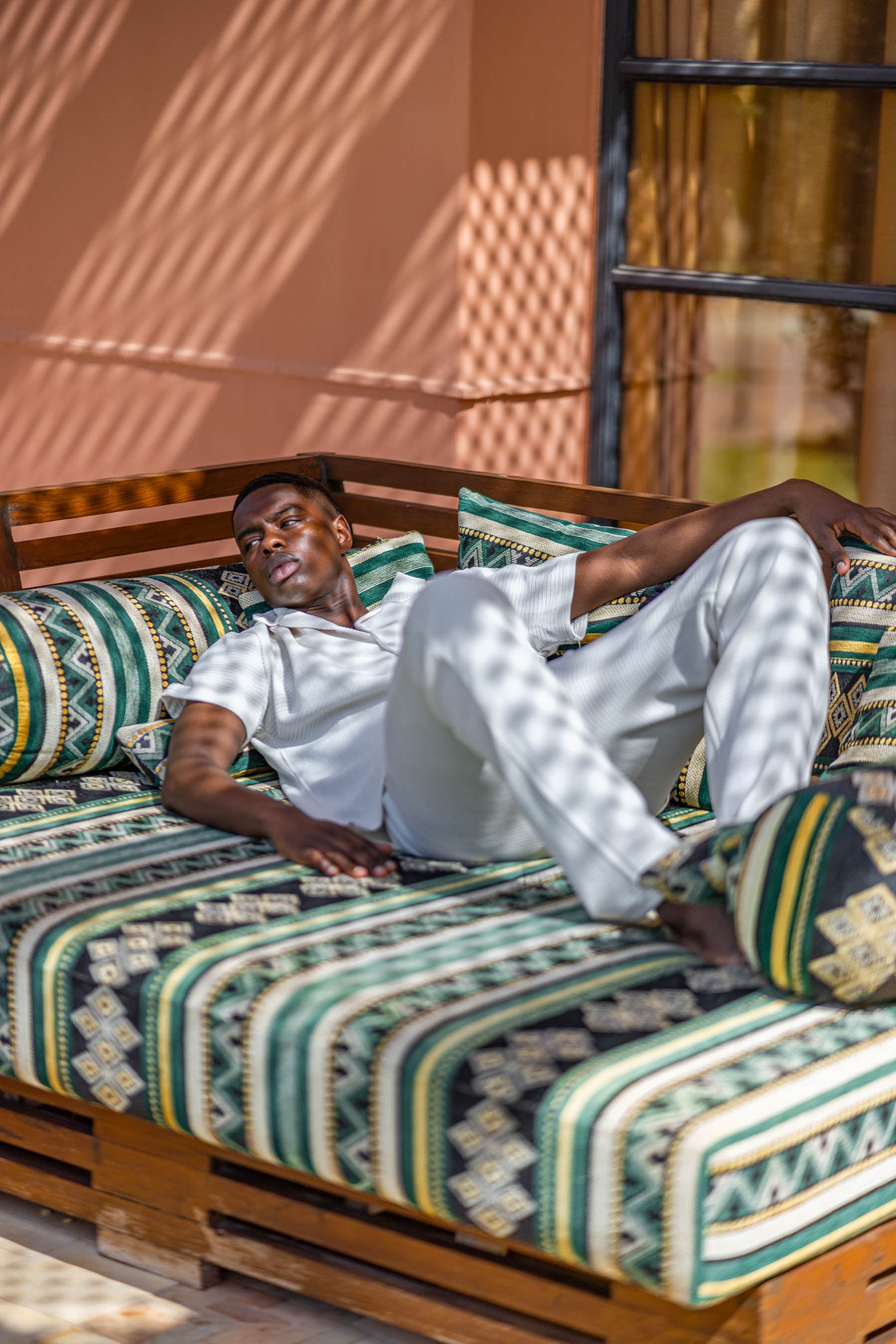 Le mannequin mesure 186 cm et porte la taille M