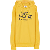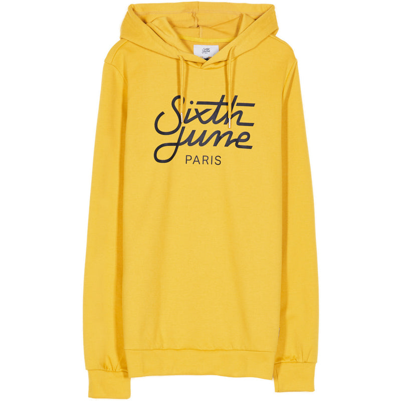 Sweat capuche homme Sixth June avec un gros logo imprimé à l'avant. Coupe ajustée et cordons de serrage au niveau de la capuche. Modèle jaune moutarde.