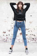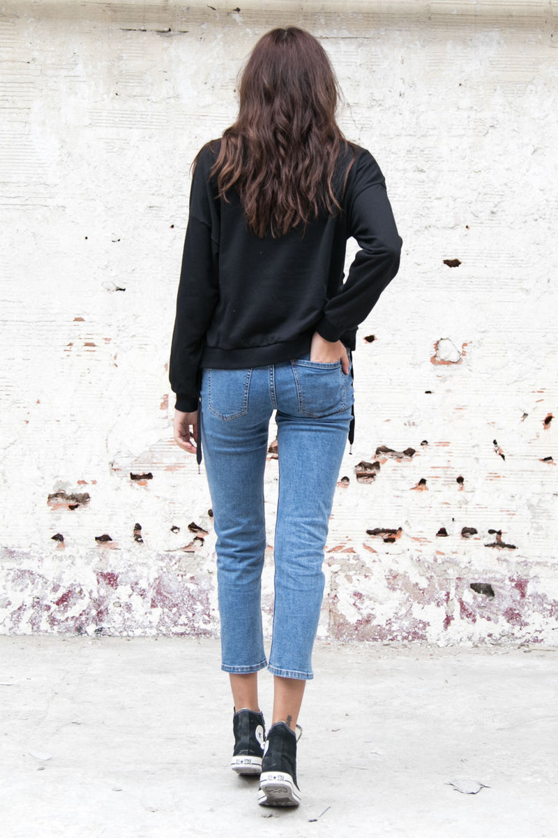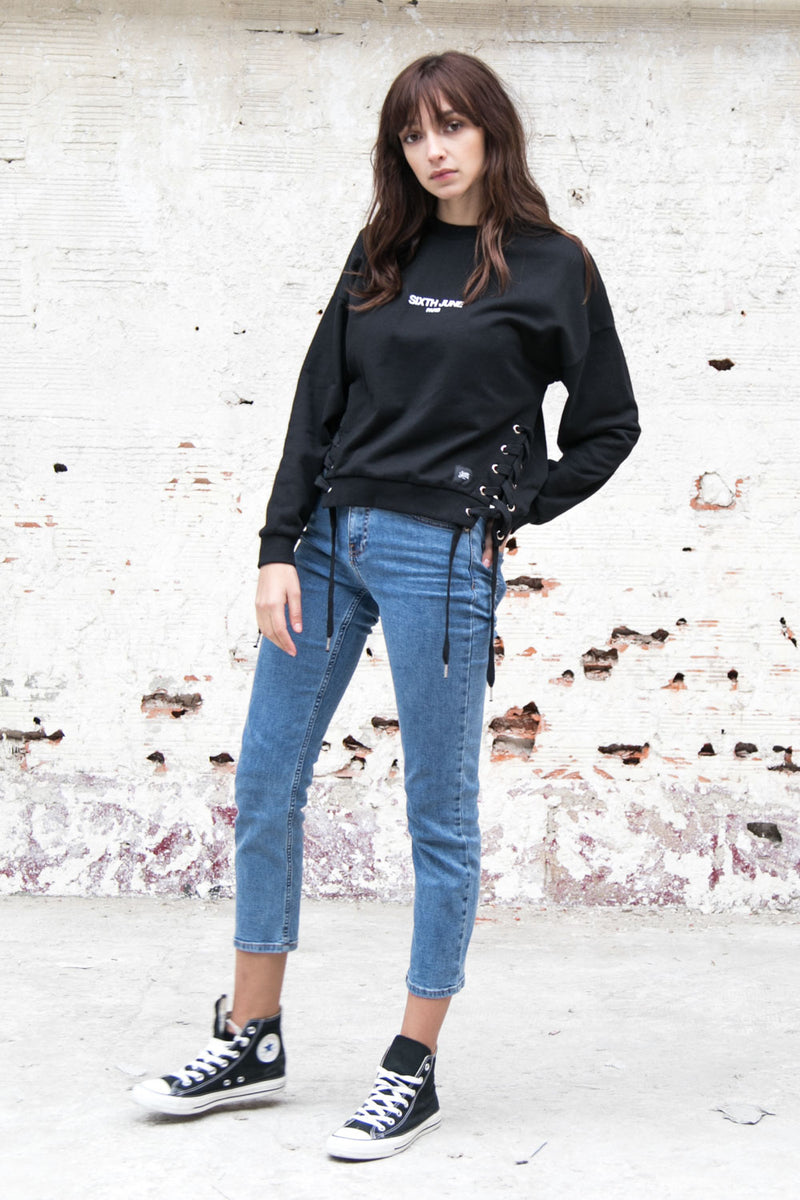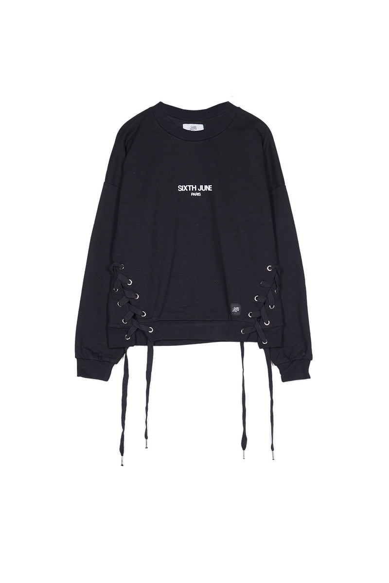 Sweat capuche Sixth June Femme avec un laçage sur les côtés, et un petit logo Sixth June Paris à l'avant. Coupe large avec épaules tombantes. Modèle noir.