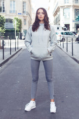 Sweat à capuche femme Sixth June avec une coupe plus large qu'un sweat classique . Epaules tombantes, poche kangourou et matière douce. Modèle gris clair uni.