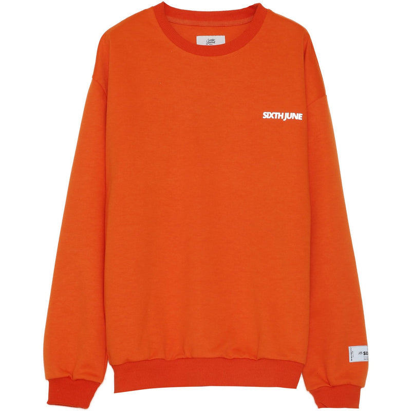 Sweatshirt pour homme de marque Sixth June. Imprimés Sixth June de couleur blanche à l'avant et à l'arrière réfléchissants, effet brillant à la lumière. Patch réfléchissant sur la manche gauche, bords-côtes au niveau de la base et des poignets. Coupe classique, épaules tombantes. Modèle orange.