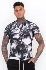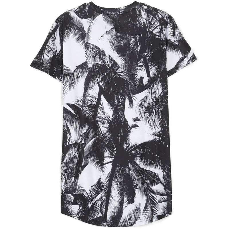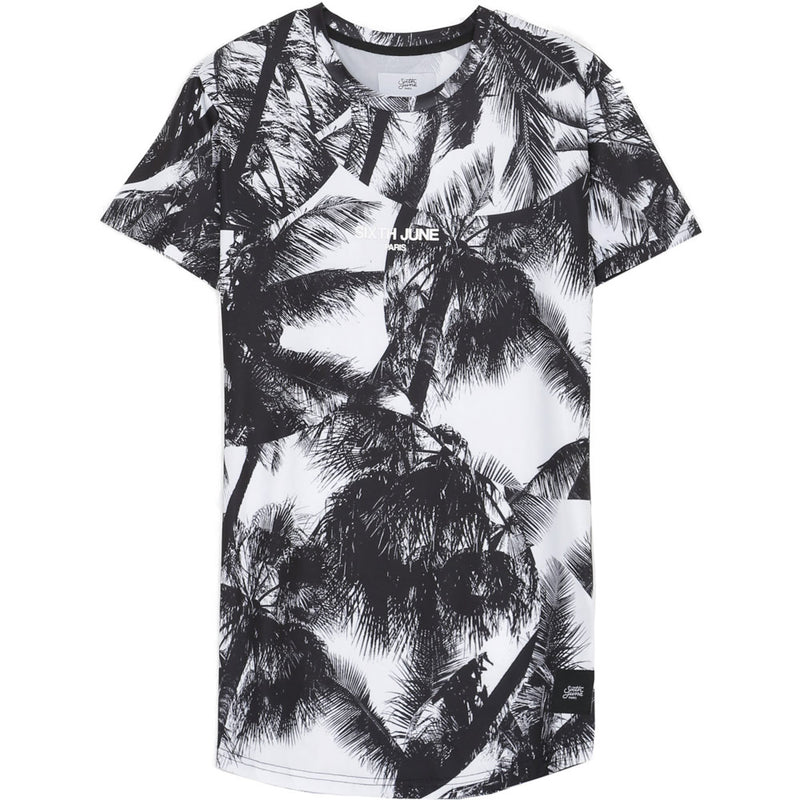 T-shirt Sixth June pour homme avec imprimé palmiers façon all-over. Coupe ajustée, base légèrement arrondie, "Sixth June Paris" imprimé à l'avant, matière extensible et effet satiné. Modèle noir et blanc.