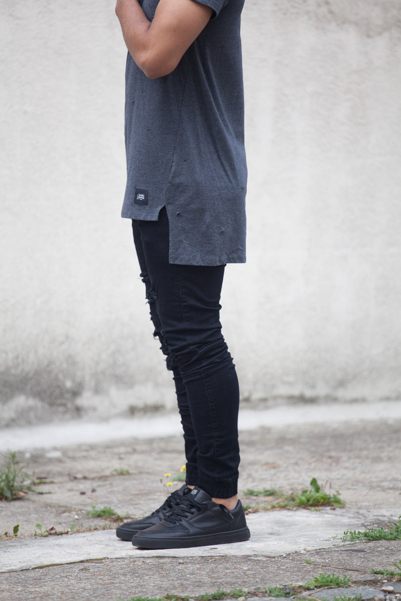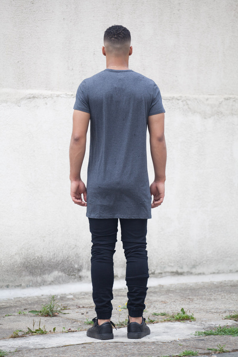 T-shirt gris Sixth June Homme. Fentes en bas sur le devant. Coupe oversize et asymétrique arrière plus long que l'avant.