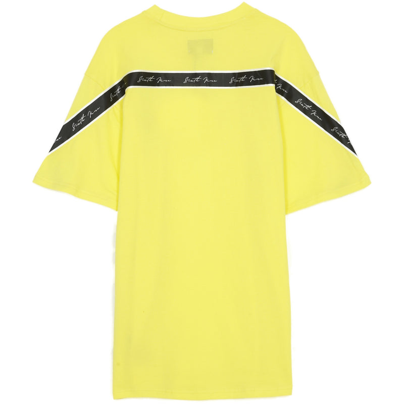 T-Shirt Sixth June pour homme bande transversale dans le dos. Coupe large, épaules tombantes, logo signature brodé à l'avant, bande transversale bicolore sur le dos et les manches avec logo Sixth June signature imprimé en continu sur la bande. Modèle jaune fluo.