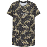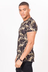 T-shirt Sixth June pour homme avec imprimé baroque façon all-over. Coupe ajustée, base légèrement arrondie, "Sixth June Paris" imprimé à l'avant, matière extensible et effet satiné. Modèle noir et or.