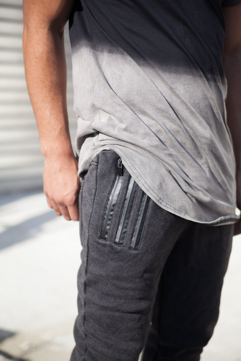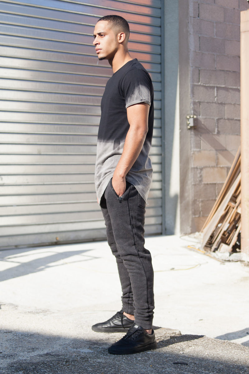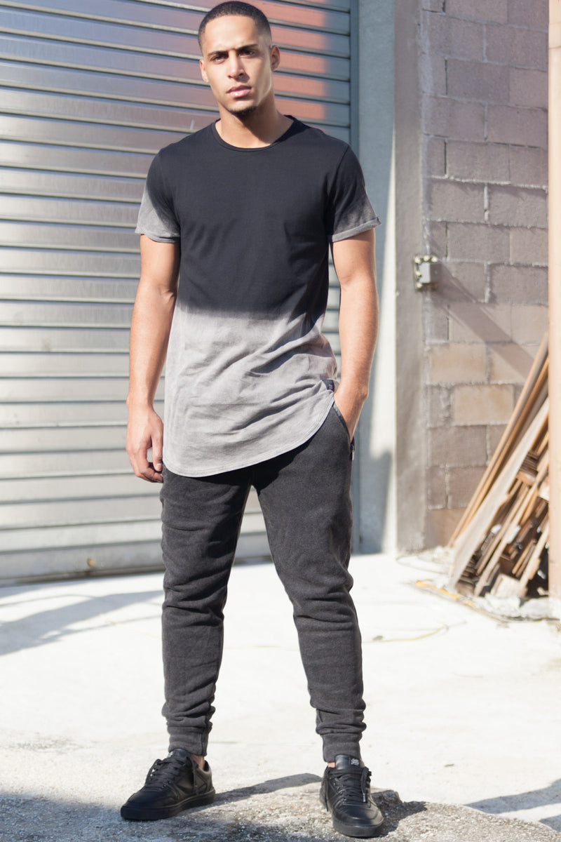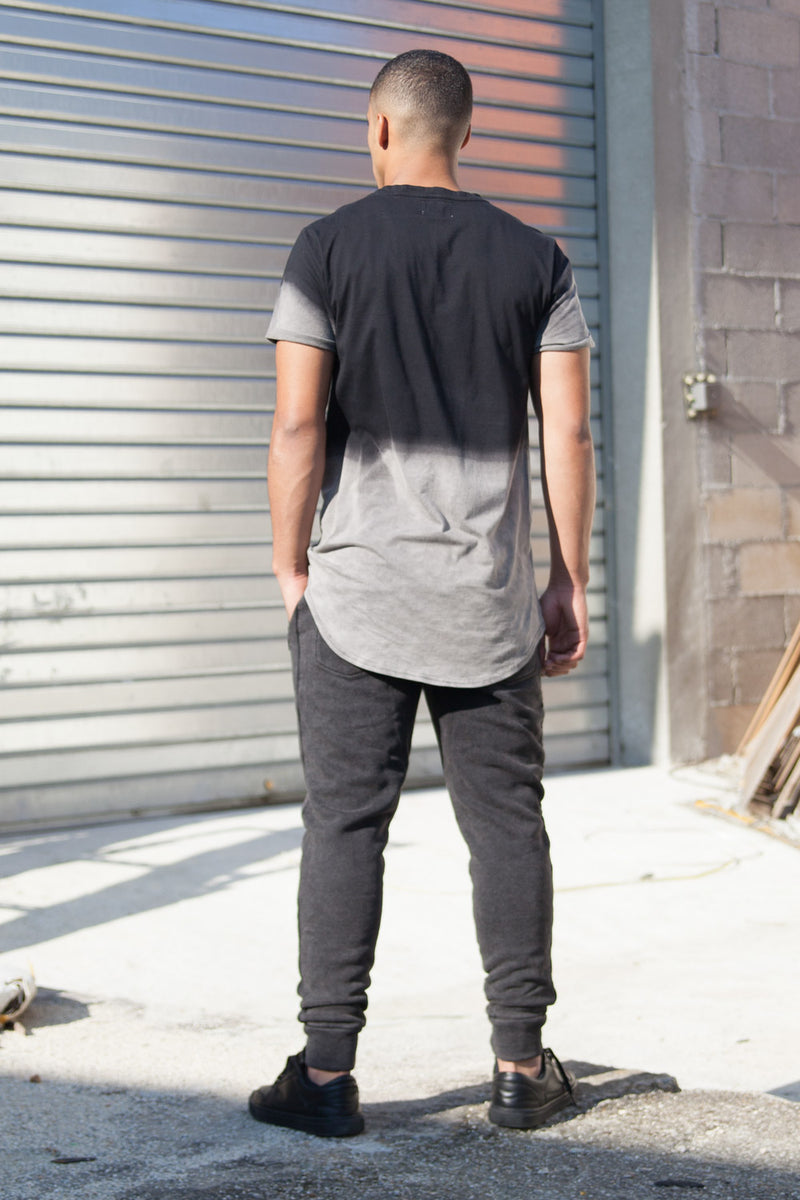 T-shirt noir et gris Sixth June Homme. Effet tie and dye bicolore. Coupe oversize arrondie.