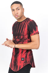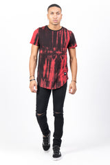 T-shirt homme Sixth June avec un effet délavé peinture (acid washed) all over. Coupe classique et forme arrondie au niveau du bas. Modèle noir rouge.