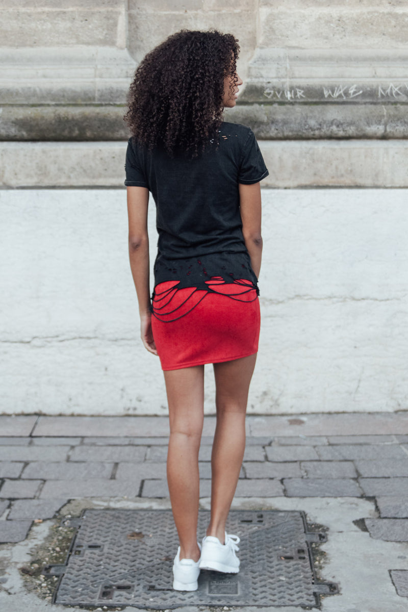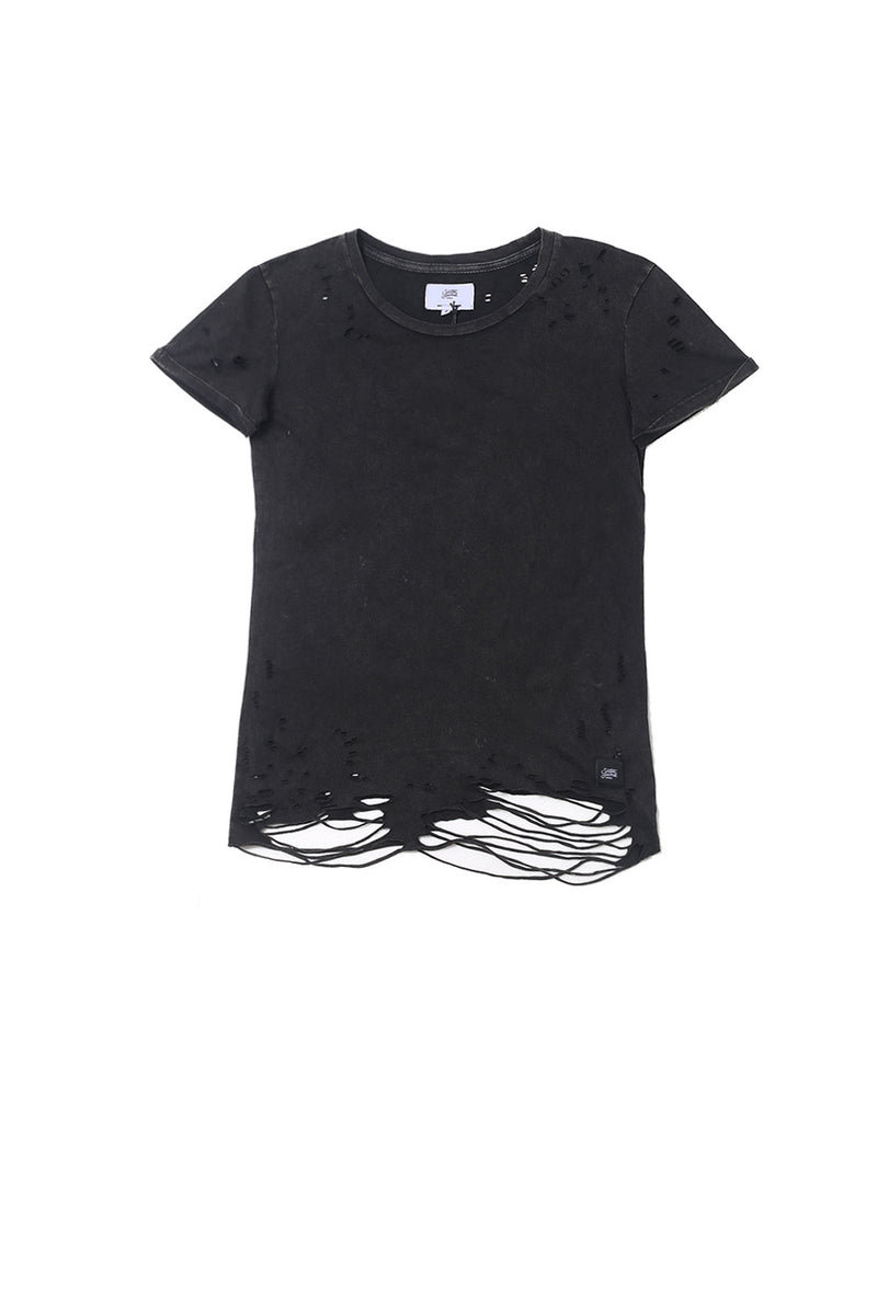 T-shirt noir Sixth June Femme. Effet destroy et larges fentes en bas.