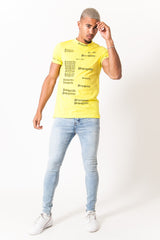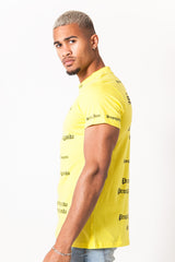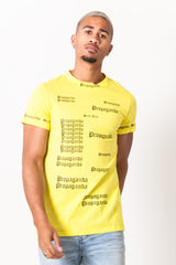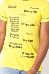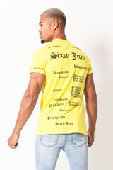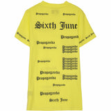 T-shirt manches courtes pour homme de marque Sixth June. Imprimés propaganda et Sixth June à l'avant et à l'arrière. Coupe ajustée. Modèle jaune.