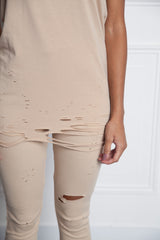 T-shirt imprimés chinois Femme destroy beige W2359VTS