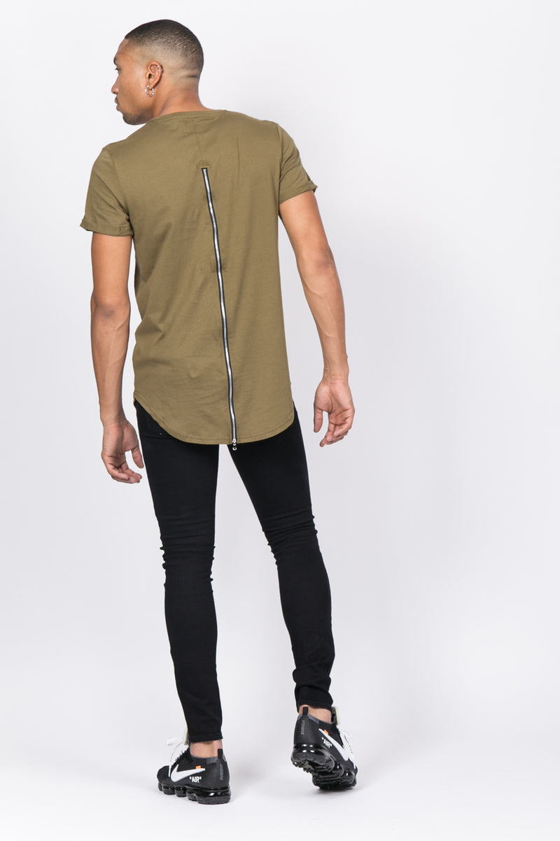 T-shirt kaki Sixth June Homme. Zip dans le dos. Coupe oversize.