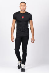 T-shirt homme Sixth June avec un patch rose central et des zips latéraux. Coupe ajustée et petit ourlet au niveau des manches. Modèle noir.