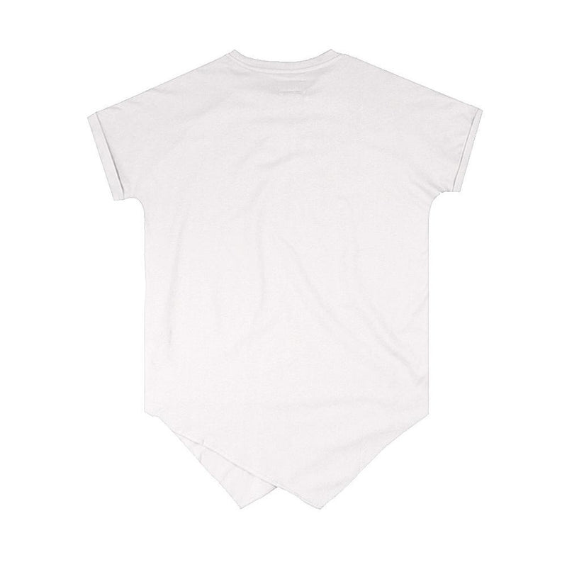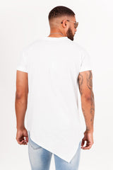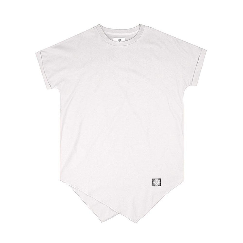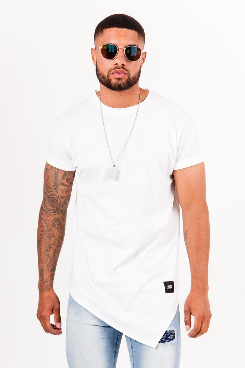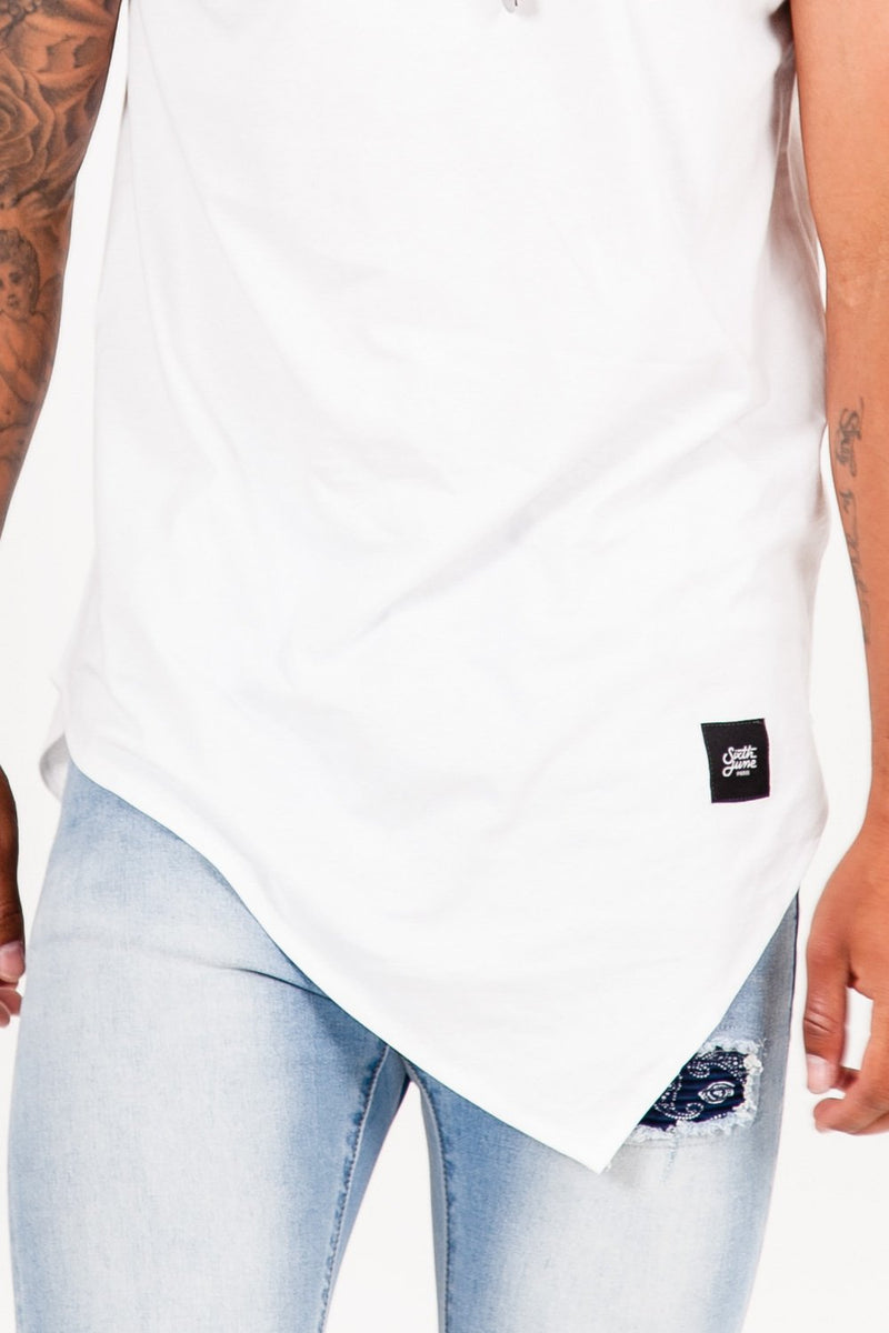 T-shirt à manches courtes pour homme de marque Sixth June. Coupe en pointe à l'avant et à l'arrière. Patch logo à l'avant. Coupe classique, un peu large. Modèle blanc.