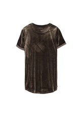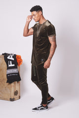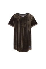 T-shirt homme Sixth June en tissu velours avec coupe longue et arrondi en bas. Coupe classique, col rond et manches courtes. Modèle kaki uni.