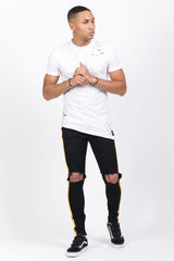 T-shirt homme Sixth June avec des trous au niveau des épaules et du bas. Coupe moulante et asymétrique, et petit ourlet au niveau des manches. Modèle blanc.