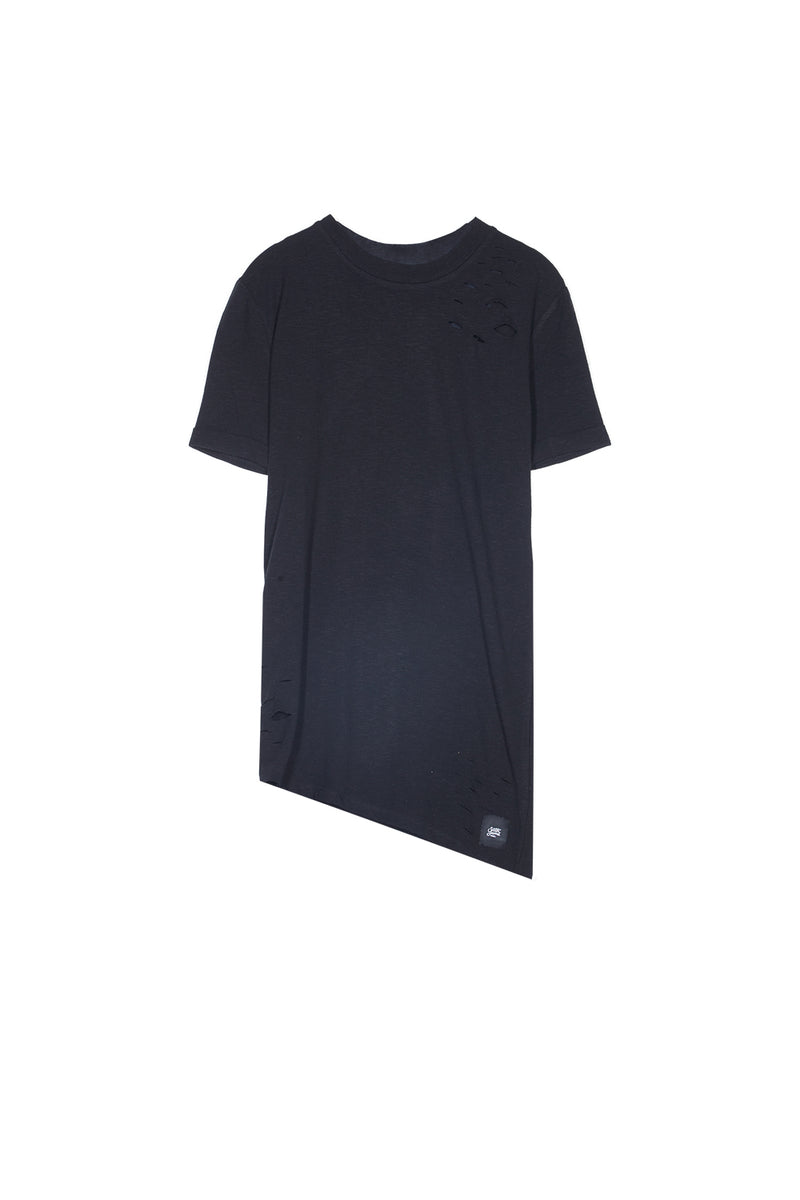 T-shirt homme Sixth June avec des trous au niveau des épaules et du bas. Coupe moulante et asymétrique, et petit ourlet au niveau des manches. Modèle noir.