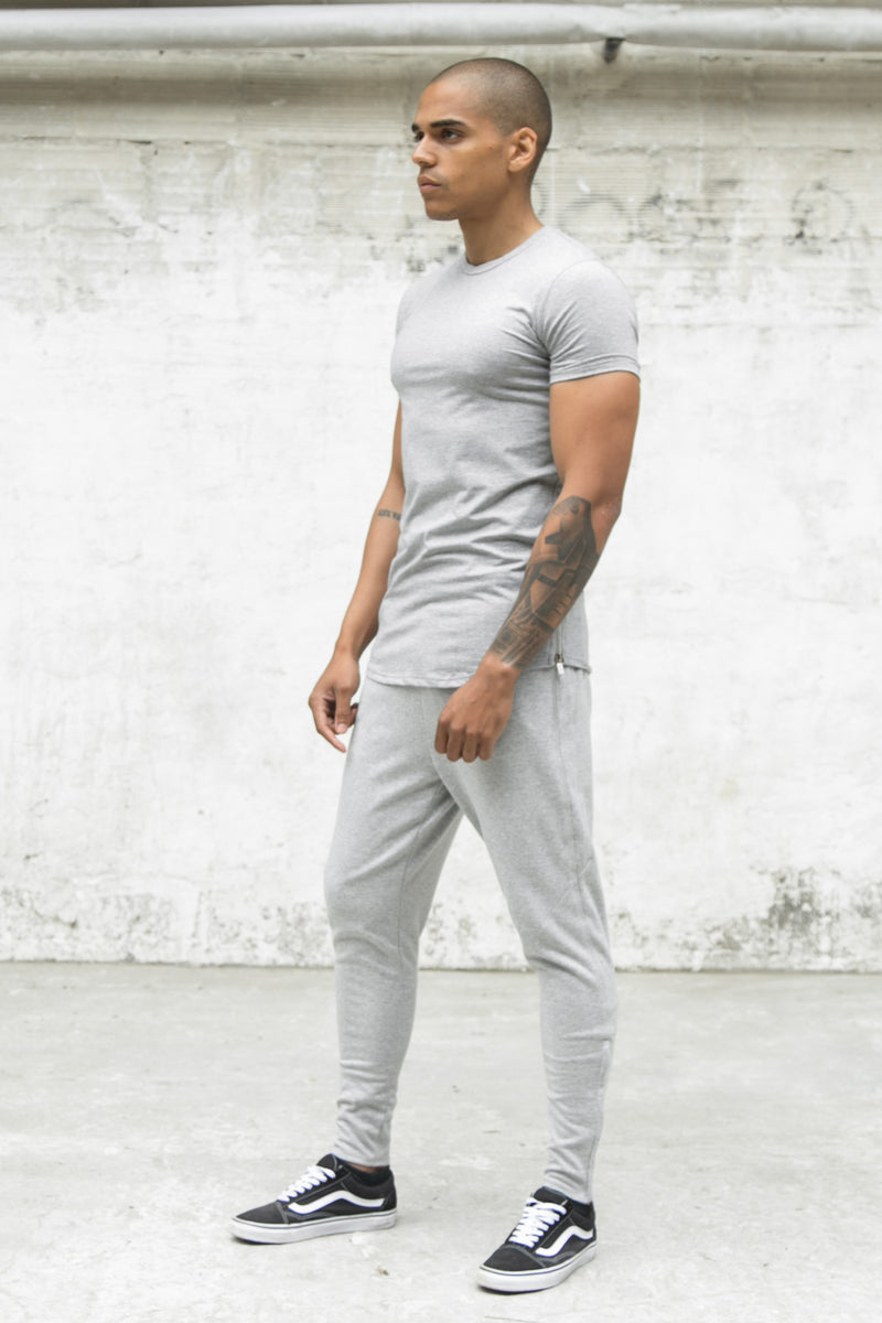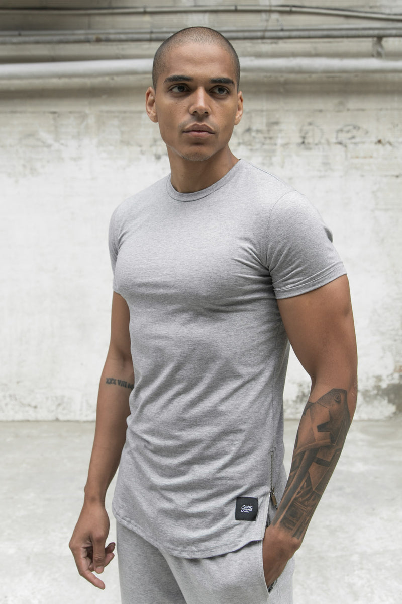 T-shirt homme Sixth June avec coupe moulante et zips latéraux. Modèle gris clair.