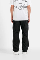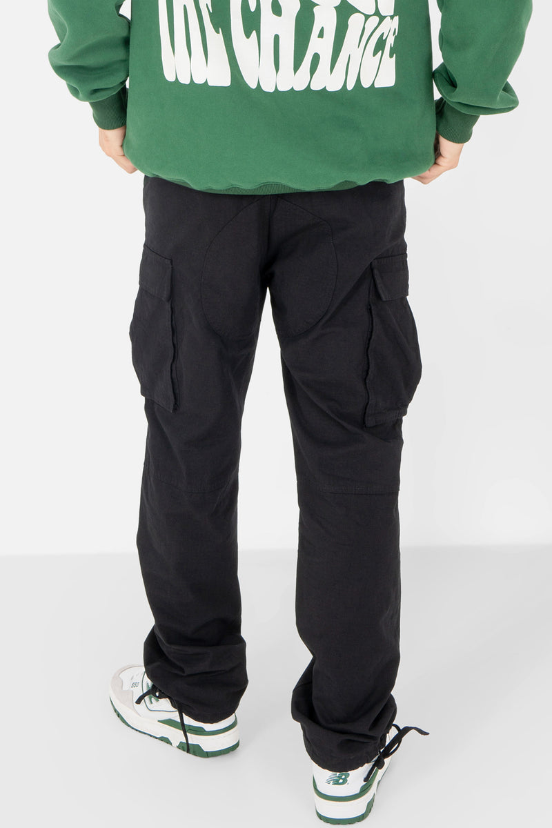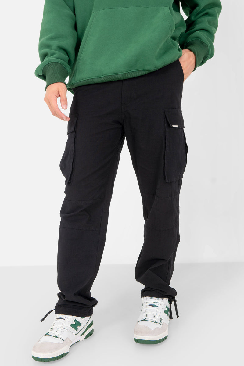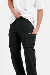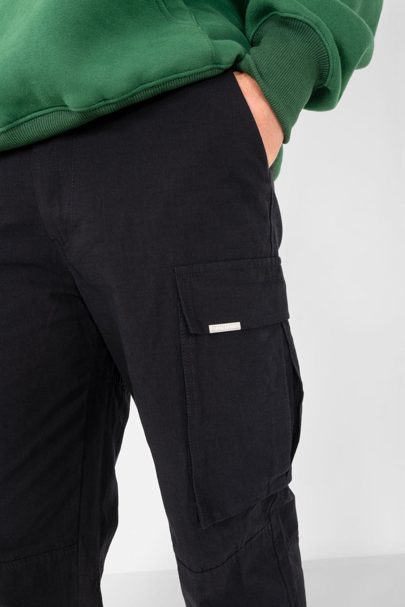 Poches cargo sur les côtés dont l'une avec logo métallique, tissu anti-dechirure.