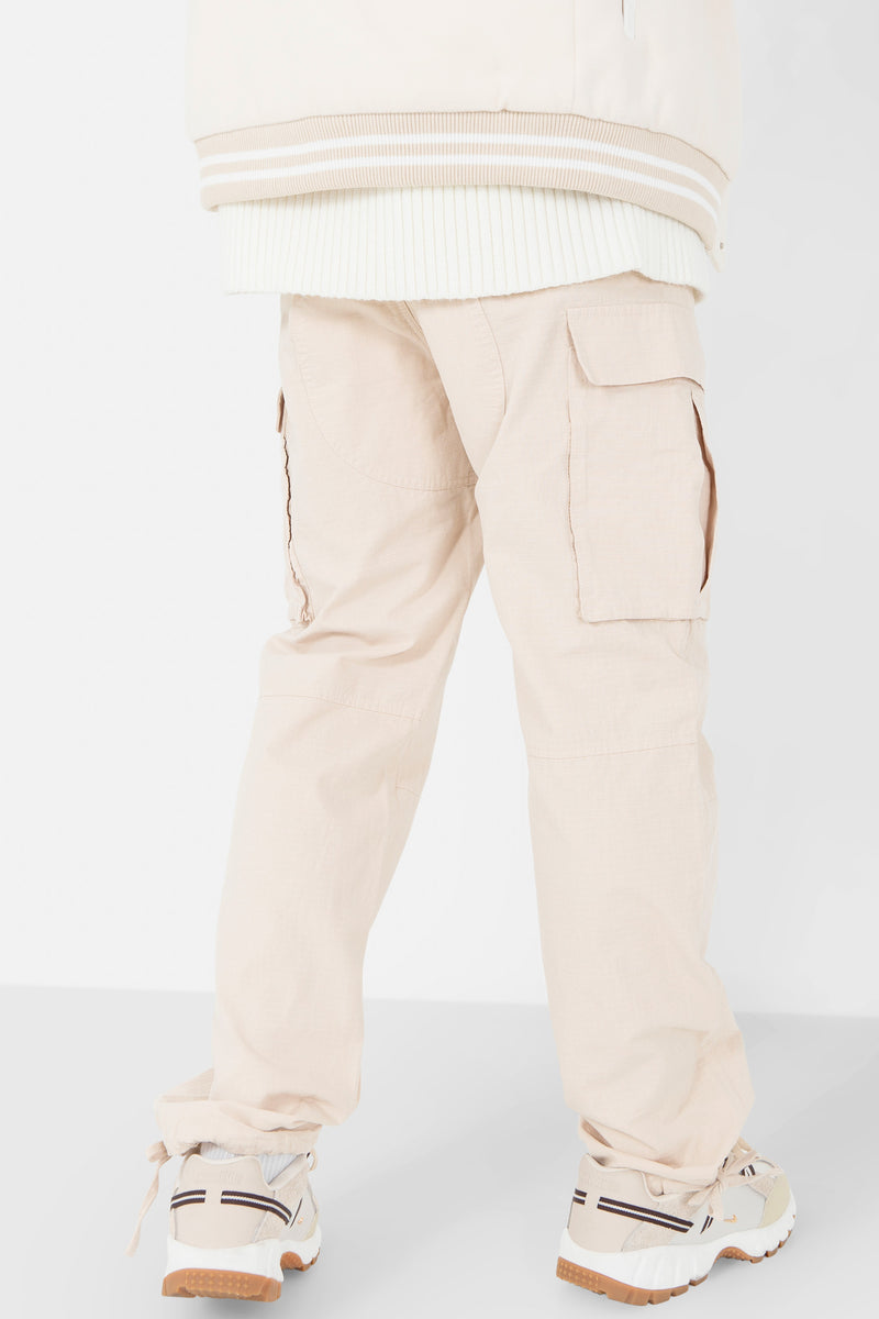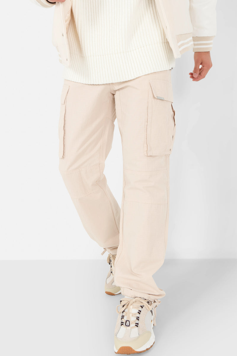 Poches cargo sur les côtés dont l'une avec logo métallique, tissu anti-déchirure.