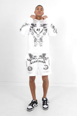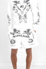 Tissu épais avec intérieur doux, imprimés inspiration Tarot sur l'ensemble du tissu, logo et texte imprimés en caractères gothiques.