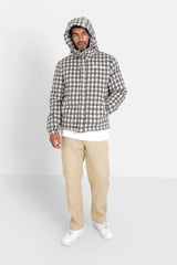 Capuche non amovible avec cordons de serrage, fermeture centrale à zip et boutons pression, poches latérales, poche intérieure, élastique aux poignets, doublure (100% polyester), ne pas éssorer en machine.