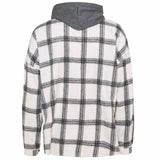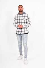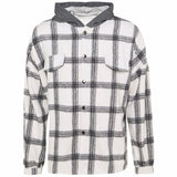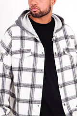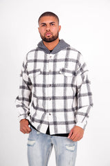 Surchemise à capuche pour homme de marque Sixth June. Imprimé tartan, capuche non amovible. Fermeture à boutons et poches cargo à l'avant. Coupe oversize, épaules tombantes. Modèle blanc et vert.