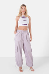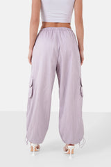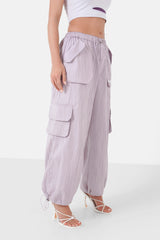 Poches latérales avec rabat, poches sur les cotés à rabat, logo brodé à l'avant, cordon de serrage à la taille et aux chevilles.