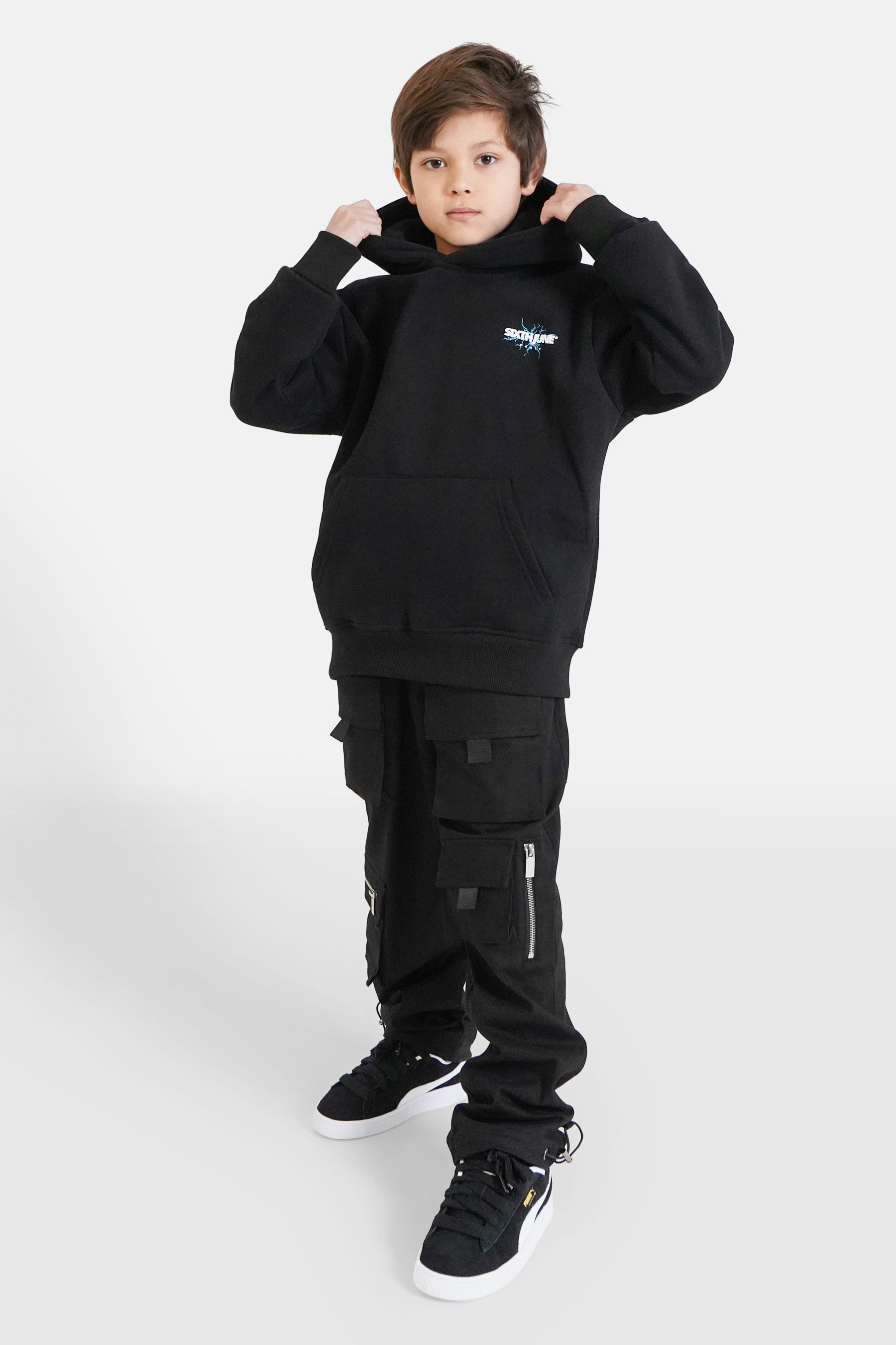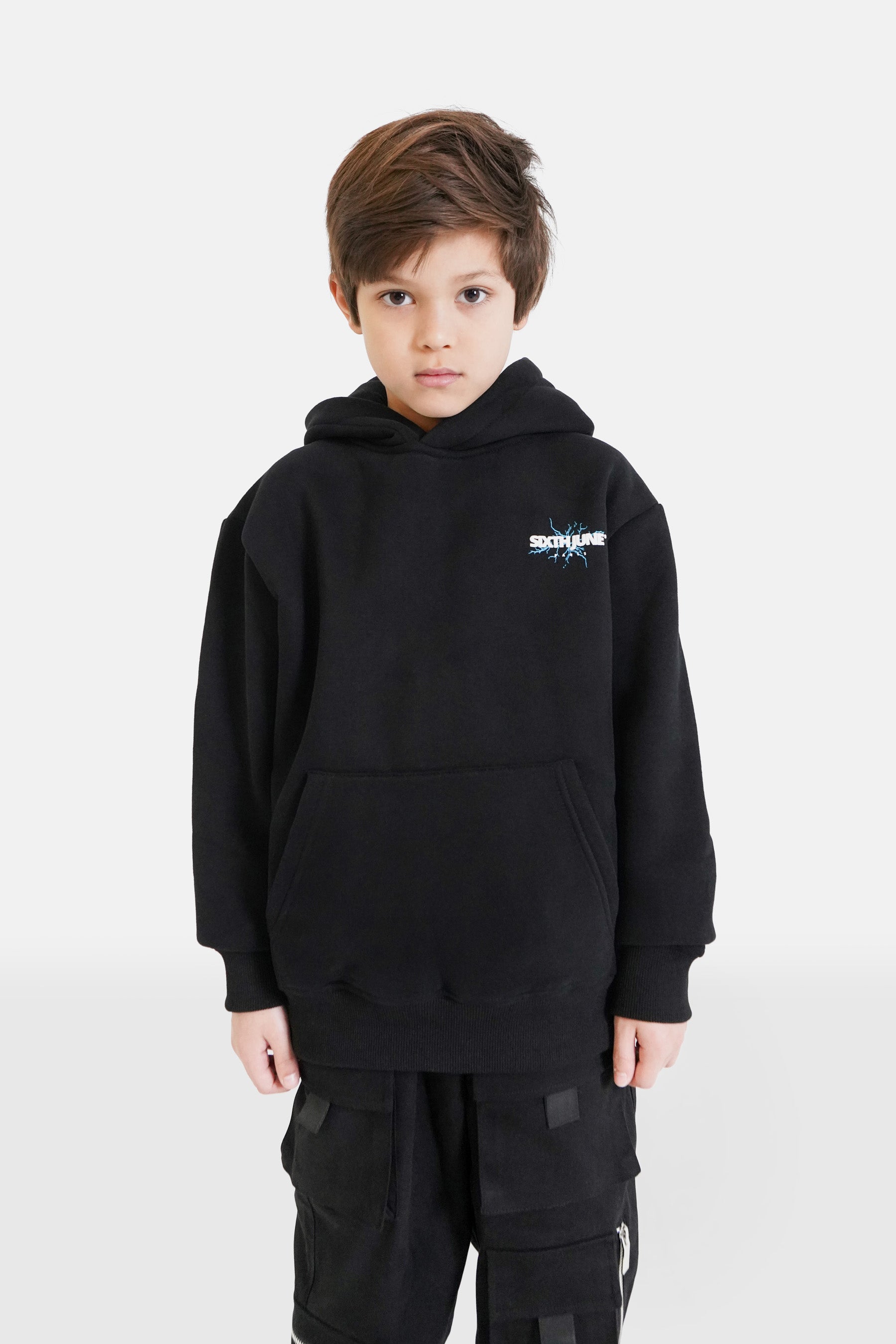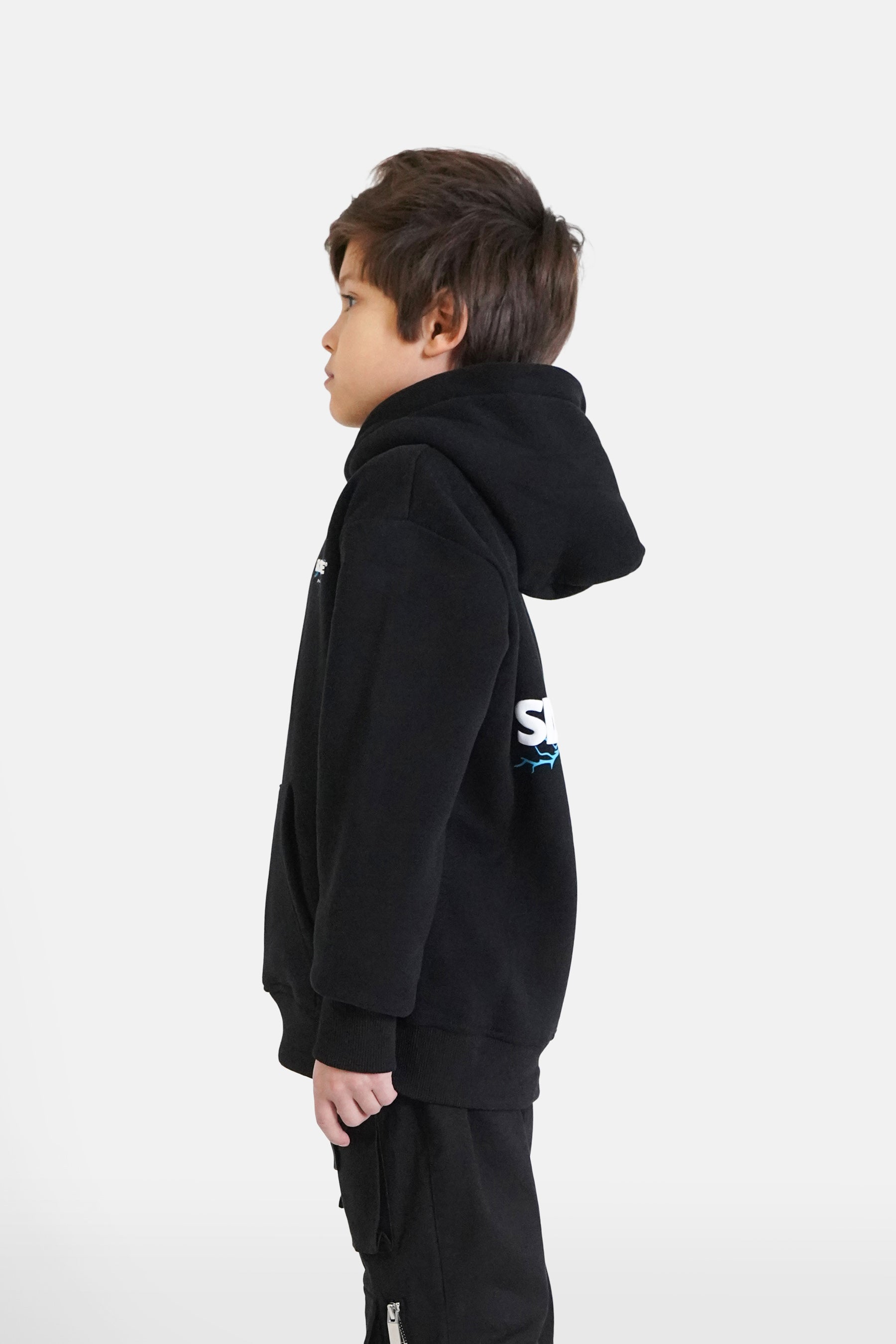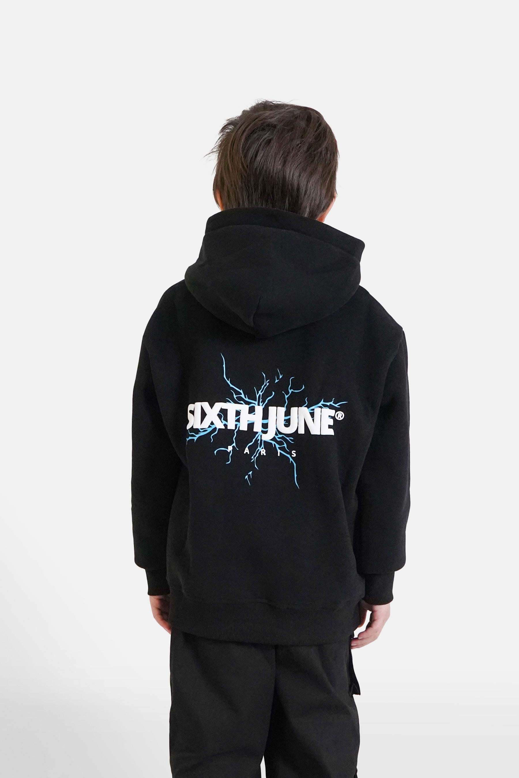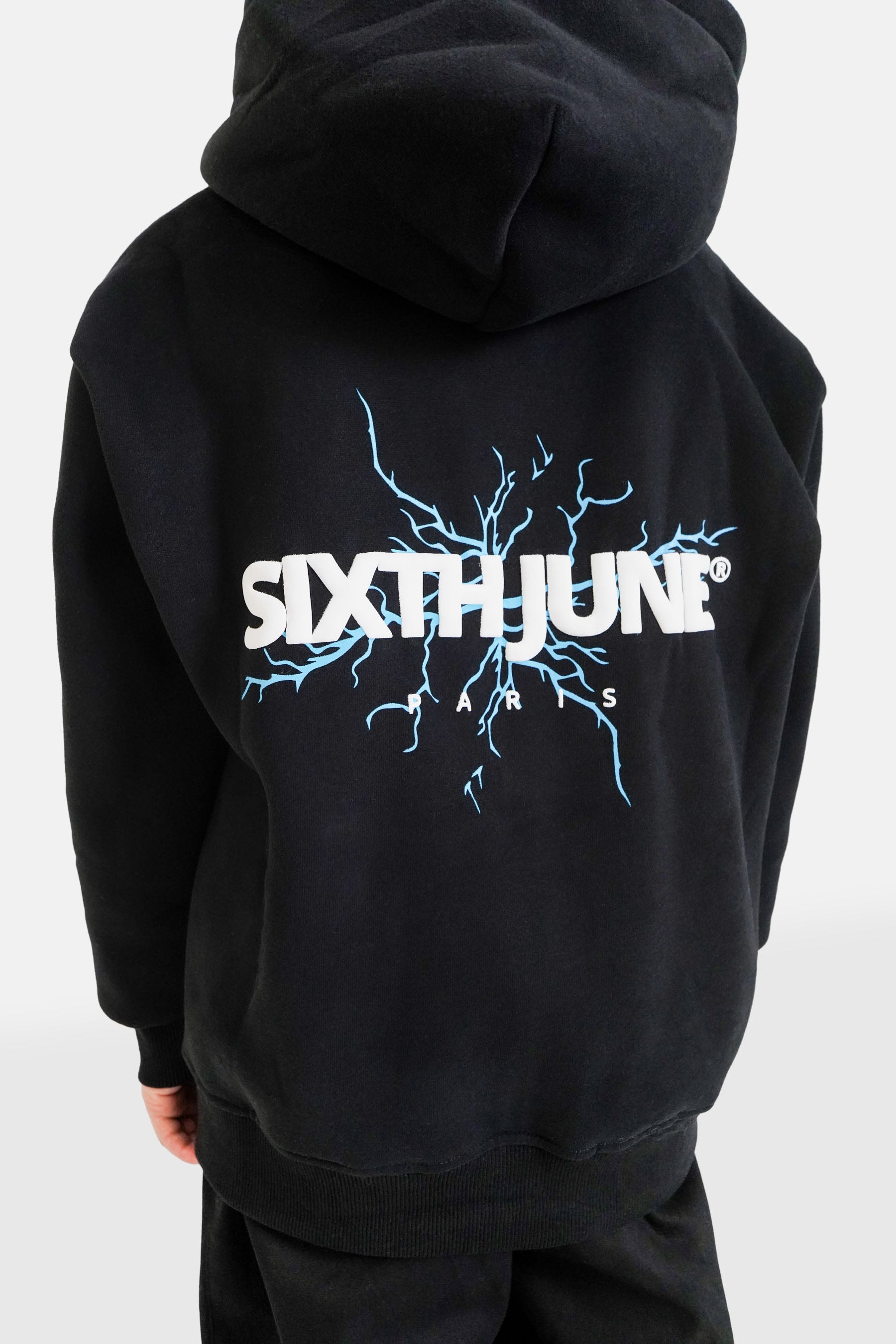 Petit logo avec éclair au niveau de la poitrine, grand logo avec éclair au dos.
