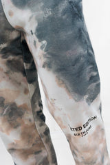 Tissu tie and dye avec plusieurs nuances de couleurs, imprimé Limited Edition à l'avant sur le genoux gauche.