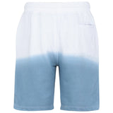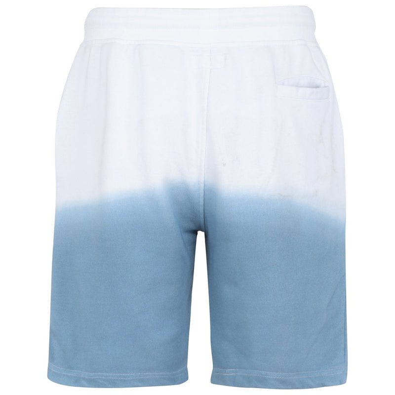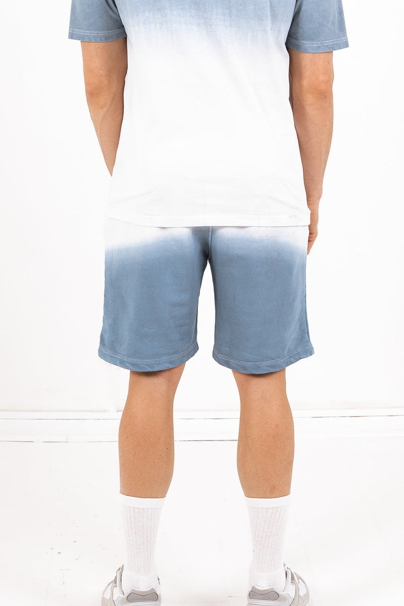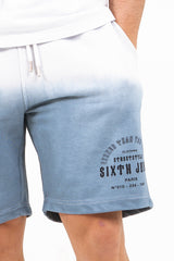 Short pour homme de marque Sixth June. Dégradé de couleur à la verticale, effet tie and dye. Inscription: sooner than you think, clothing et autres à l'avant. Taille élastique avec cordon de serrage, poches à l'avant et poche l'arrière. Coupe classique. Modèle bleu.
