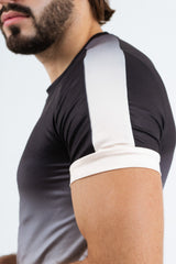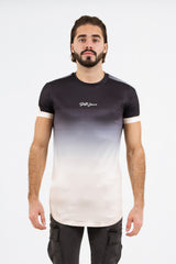 T-shirt à manches courtes pour homme de marque Sixth June. Dégradé de couleurs dans un esprit tie and dye sur l'ensemble du tissu. Logo signature à l'avant, tissu très élastique et léger. Coupe ajustée, près du corps. Modèle noir et beige.