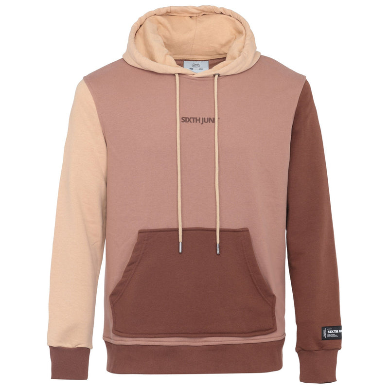 Tissu tricolore avec des tonalités de beige, marron. Logo inscrit à l'avant, poche kangourou.